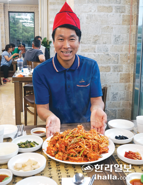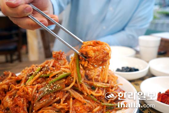 | 주인장 김춘식씨가 아귀찜을 소개하고 있다 |