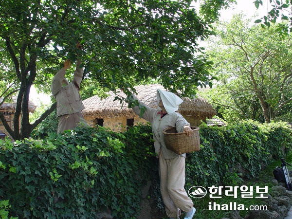 ▶'과랑과랑한 벳듸 감물 들염수다'=서귀포시 표선면에 자리잡은 제주민속촌에서도 11일까지 감물들이기 행사를 마련하고 있다. '과랑과랑한 벳듸 감물 들염수다'주제로 제주민속촌 내 잔디광장에선 감물들이기, 봉숭아 물들이기, 대나무 물총놀이 등이 진행됐다. '과랑과랑한 벳듸 감물 들염수다'는 제주어로 '쨍쨍한 햇볕아래 감물 들이고 있습니다'를 뜻한다. 제주민속촌에서 직접 재배하고 있는 토종 풋감을 따서 '도구리(함지박)'에 넣고 '덩드렁마께(나무 방망이)'로 찧고, 즙을 내어 옷감에 베이게 하고, 바래는(말리는) 과정을 체험할 수 있다.