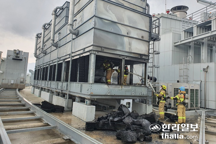 옥상 설치된 3층 높이 냉각탑서 화재 25분 만에 진화