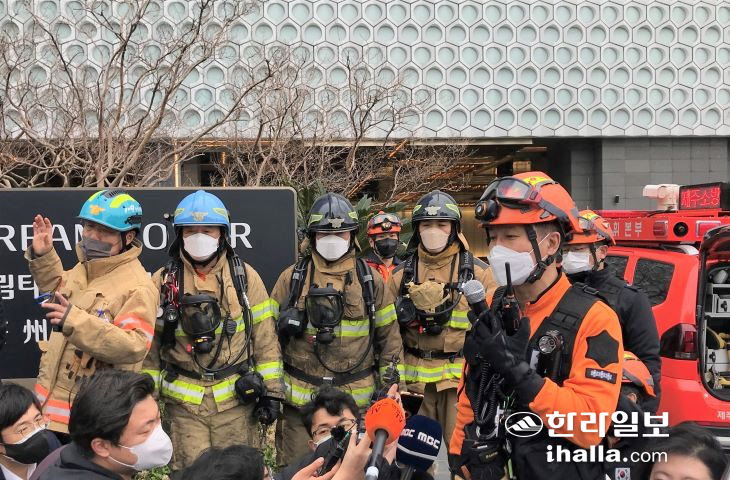 제주소방안전본부 관계자가 현장 브리핑을 하고 있다. |