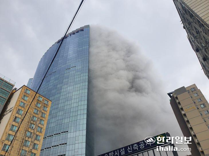 [종합2보] 38층 제주 드림타워 불은 껐지만 도심 화재 '아찔'
