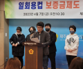 전국 자원순환 시민모임들의 연대기구인 컵가디언즈와 제주환경운동연합은 5일 제주도청 앞에서 기자회견을 하고 있다. 이상민 기자