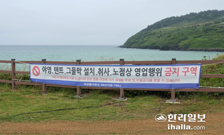 함덕해수욕장 일대에 게시된 불법행위 금지 안내 현수막. |