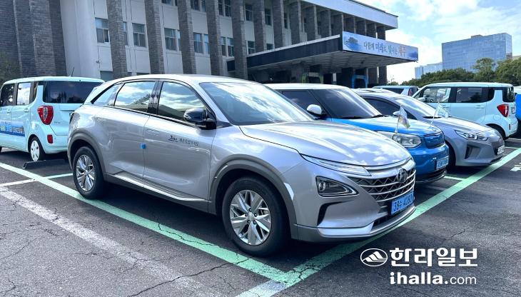 제주특별자치도청 주차장에 주차된 수소 연료 공용차량.