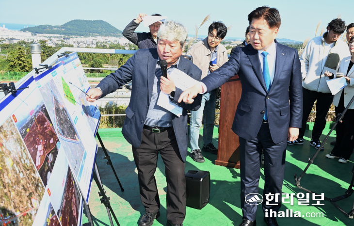 오영훈 제주특별자치도지사는 15일 오후 제주시 도련1동 제주공영화물주차장 옥상에서 '(가칭) 제주 화북2 공공주택지구' 개발 계획을 발표했다.