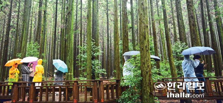 겨울비 내리는 사려니숲. 한라일보DB