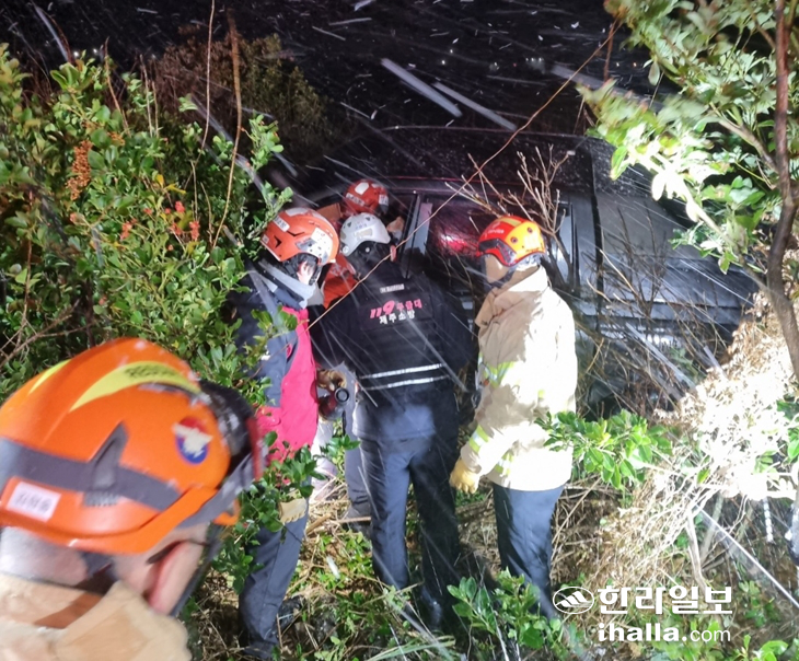21일 제주소방안전본부에 따르면 이날 오전 5시 37분쯤 제주시 한림읍 귀덕리에서 차량이 눈길에 미끄러져 도로 옆 도랑에 빠지는 사고가 발생했다.
