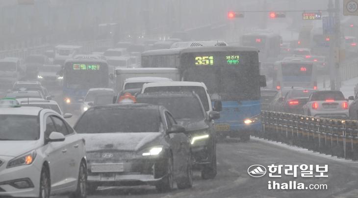 [현장] 제주 폭설 동반한 강추위에 출근길 '난리통'