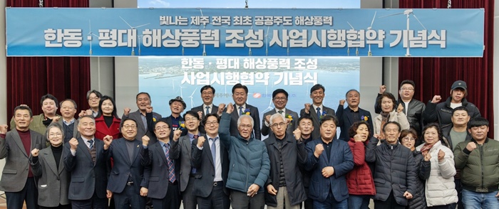 [한라일보] 전국 최초 공공주도 해상풍력사업인 '제주 한동·평대 해상풍력 발전단지 조성사업'이 사업시행협약을 마무리하고 본격적으로 추진된다.