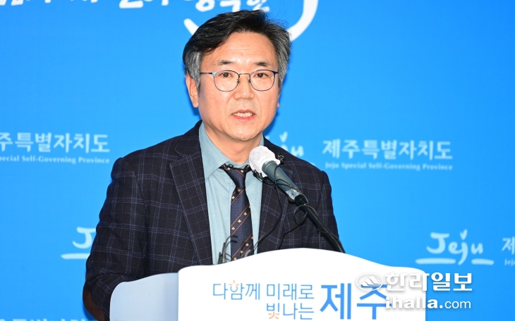지난 10일 제주도청 기자실에서 입장문을 발표하고 있는 김희현 제주도 정무부지사.
