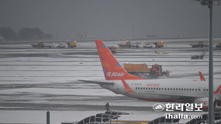 [한라일보 : 기사 보강 오전 9시44분] 제주 전역에 대설특보가 발효된 23일 제주 하늘길도 차질을 빚고 있다. 제설 작업으로 인해 이날 오전 8시까지 폐쇄됐던 활주로는 다시 열렸지만 항공사의 사전 결항 조치 등이 이어지면서 항공기 운항이 정상화하기까지는 시간이 걸릴 것으로 보인다.