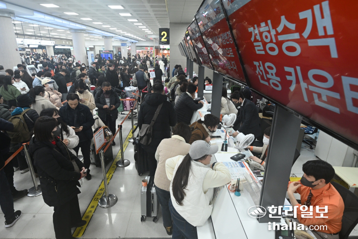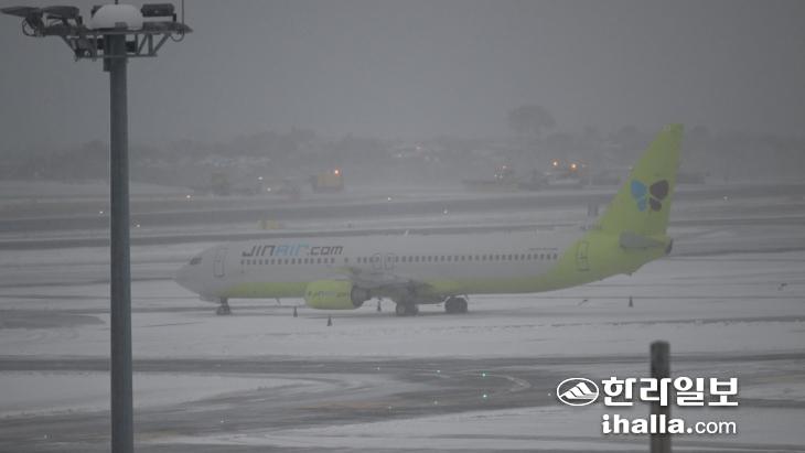 [한라일보] 계속되는 눈날씨와 강풍으로 인해 오늘(23일) 오후 4시를 기점으로 제주공항을 오가는 국내선 항공기 운항이 모두 중단됐다.