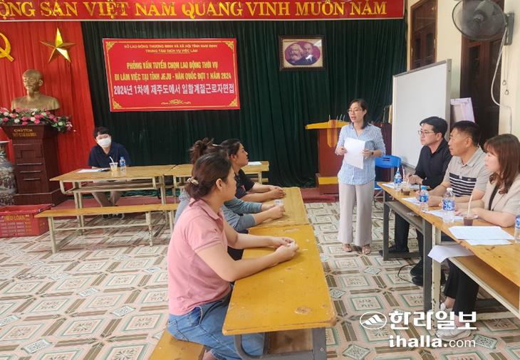 이를 위해 제주시와 제주고산농협은 남딘성의 협조로 베트남 현지에서 근로자를 모집했다. 그 결과 30명(여 20, 남 10) 선발에 295명이 지원했다. 이들 중에서 1차 서류 심사를 통과한 45명을 대상으로 지난 4일 면접과 체력 테스트를 진행했다.