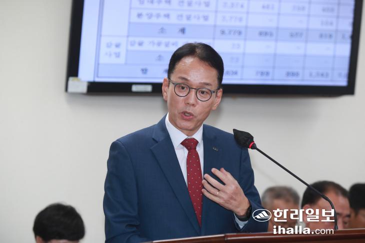 백경훈 제주도개발공사 사장이 15일 제주도의회 환경도시위원회 행정사무감사에 출석해 답변하고 있다. 제주자치도의회 제공