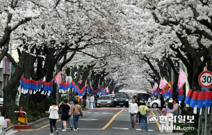 제주 왕벚꽃축제가 열린 제주시 전농로. 한라일보DB