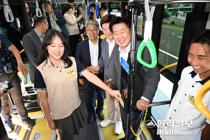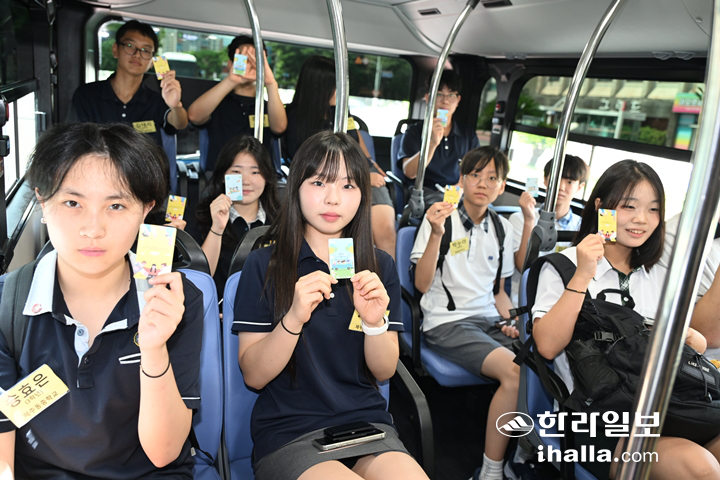 [한라일보] 제주지역 청소년 대중교통 무료이용 개통식이 13일 제주시 삼다공원에서 열렸다.