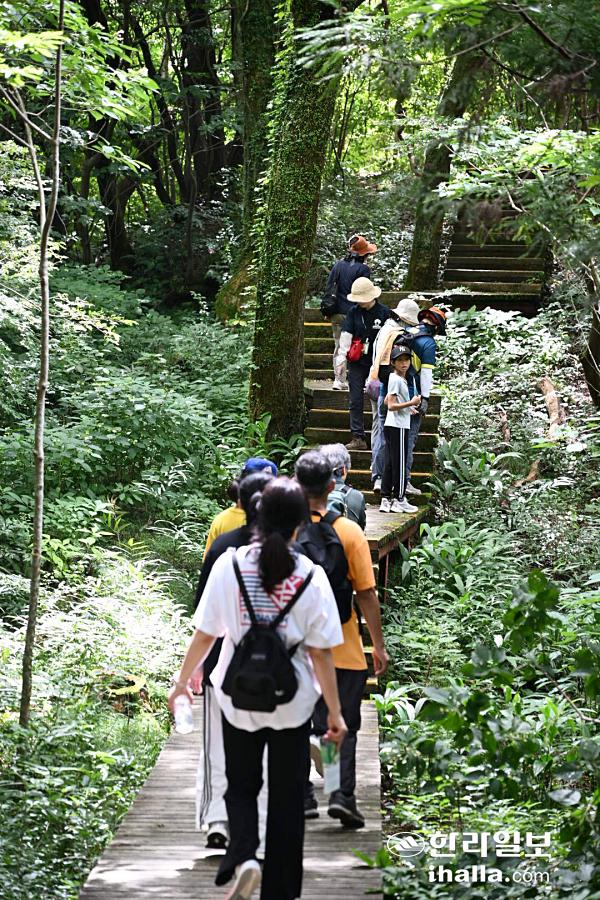 도민 박정현(43)씨는 “몇 년 전에는 용암길 코스로 트레킹을 경험했었는데 그때 기억이 좋아서 이번엔 분화구 코스를 걷고자 다시 참가했다”며 “해설사분이 설명을 너무 잘해주셔서 거문오름을 더 잘 이해할 수 있었다. 더위 속에 오름 오르는 게 쉽지 않은데 풍혈을 만나서 너무 시원하고 기분이 좋았다”고 소감을 전했다.