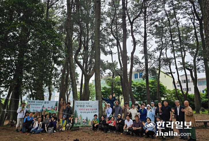 서귀포학생문화원 소나무 숲을 지키자며 모인 시민들. 서녹사·서미모 제공