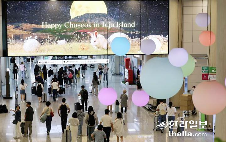지난해 추석 연휴 제주국제공항 대합실. 한라일보DB
