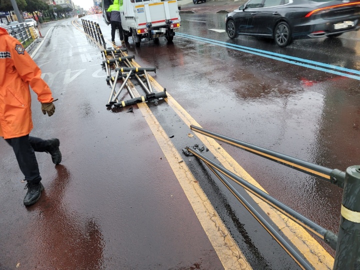 오전 9시 42분과 10시 30분쯤에는 이도2동에서도 중앙 분리대가 강풍에 전도돼 소방이 출동했다.