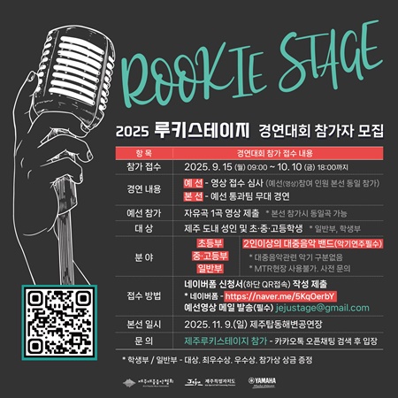 제주대중음악협회는 제주 대중음악 신예 뮤지션 루키 발굴을 위한 프로젝트 '2025 루키스테이지' 경연대회 참가자를 이달 10일까지 모집한다.