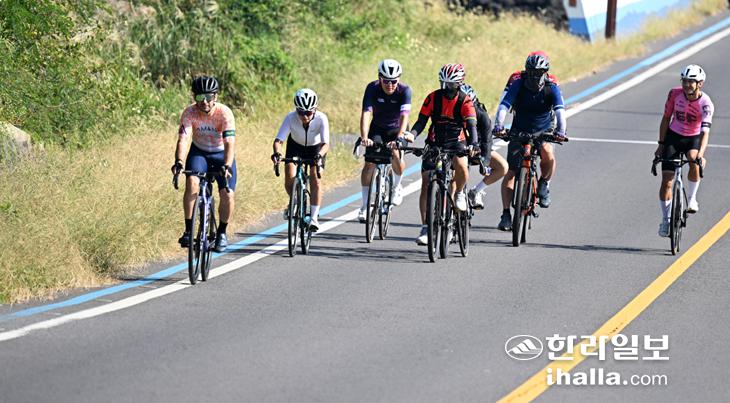 [한라일보] 도일주에 나선 라이더들이 13일 제주시 조천해안도로에서 주변 경관을 즐기며 질주하고 있다. 강희만기자