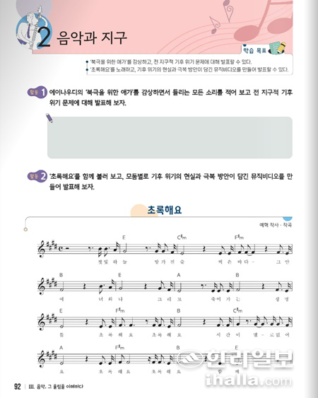환경문제 주제 노래 ‘초록해요’ 고교 교과서에 실려