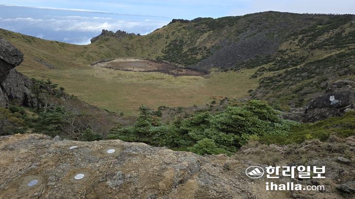 [한라일보] 제주 한라산 백록담 주변 지형이 얼마나 어떻게 변하는지 밀리미터(㎜) 단위로 추적하는 작업이 이뤄진다. 기후 변화에 따른 정상부 지형 변화를 정량적으로 파악해 보존 관리 방안을 마련하기 위한 것으로 백록담 주변 18개 지점에 추적표식판을 설치했다.