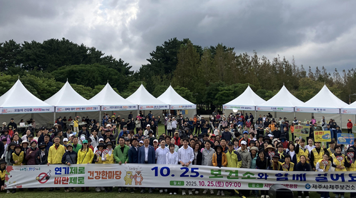 제주보건소는 지난 25일 제주시민복지타운 광장에서 '연기제로 비만제로, 건강한마당' 행사를 지역 주민과 가족 단위 참가자 등 600여 명이 참가한 가운데 진행했다.