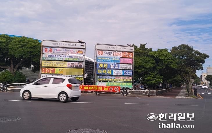 이와 관련 제주도는 내년 '옥외 광고물 디지털 전환 및 종합 관리 방안'(가제) 용역을 추진할 예정이다. 최근 '제주특별자치도 친환경 현수막 이용 및 재활용 촉진에 관한 조례'가 제정되고 제주시 노형오거리에 전자 게시대가 설치돼 시범 운영되는 만큼 현수막 등의 디지털 전환에 대한 로드맵을 그리려는 취지다.