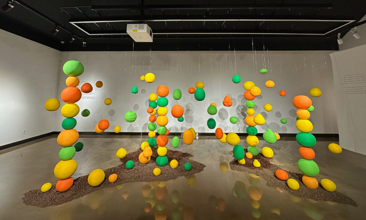 김현성 작가는 만발한 감귤꽃과 곡선과 직선이 어우러진 나뭇가지, 잎사귀가 산들산들 춤을 추는 모습에서 감귤나무의 생명력과 아름다움을 포착해 시각적으로 형상화한 설치 작품을 선보인다. 양형석 작가는 오돌토돌하거나 매끈한 감귤의 형태와 질감을 담은 도자 작품을 통해 촉각으로 감귤을 느낄 수 있는 경험을 안겨준다.