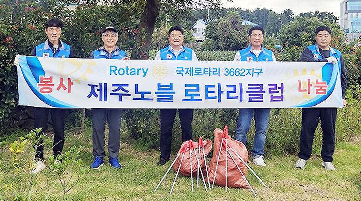 국제로타리 3662지구 제주노블로타리클럽(회장 김기한)은 지난 25일 10월 정기 환경정화 봉사활동을 실시했다.