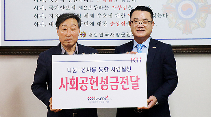 한국건강관리협회제주도지부(본부장 임정식)는 지난 27일 제주도재향군인회를 방문해 경제적 여건이 어려운 향군회원 자녀의 학업 지원을 위한 사회공헌성금을 전달했다.