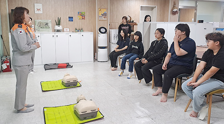 제주소방서 노형여성의용소방대(대장 이미경)는 지난 25일 아동일시보호시설 해담은 집에서 소방안전교육을 실시해 학생들을 대상으로 ▷심폐소생술 ▷응급처치 및 화재 발생 시 인명대피 등을 교육했다.