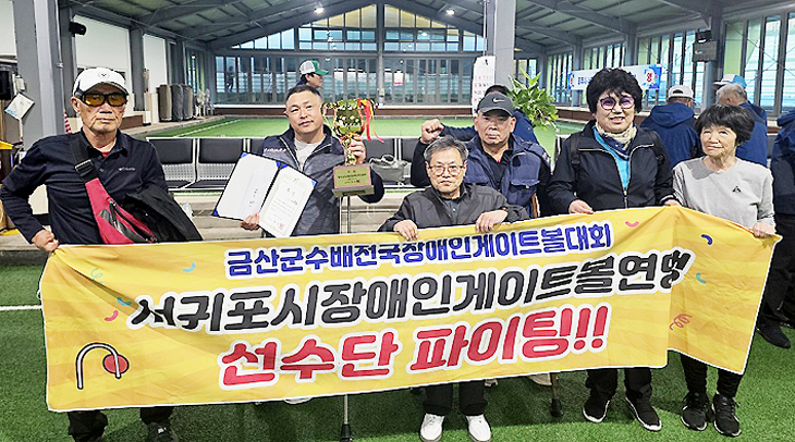 서귀포시장애인게이트볼연맹(회장 강호상)은 지난 23~24일 이틀 간 충청남도 금산군 게이트볼장에서 열린 제4회 금산군수배 전국장애인게이트볼대회에서 영예의 우승을 차지했다.