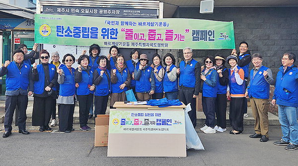 [한라일보] 바르게살기운동제주도협의회(회장 좌중언)는 지난 27일 제주민속오일시장 일대에서 임원 30여 명이 참여한 가운데 '탄소중립 실현을 위한 줄·줍·즐 홍보 캠페인'을 전개했다.