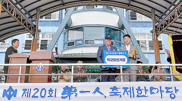 28일 제주제일중학교에 따르면 오헌봉 회장은 학교 발전을 위해 올해부터 2027년까지 3년간 매년 1000만원씩 총 3000만원의 발전기금을 기탁하기로 하고, 지난 26일 열린 제20회 제주제일중학교 총동문회 '제일인 축제 한마당'에서 첫 해분 1000만원을 전달했다.