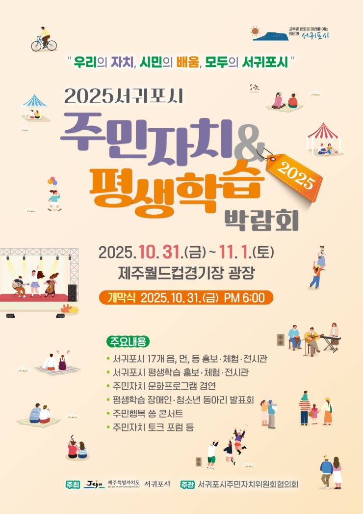 서귀포시는 이달 31일부터 11월 1일까지 제주월드컵경기장 광장에서 '2025 서귀포시 주민자치&평생학습박람회'를 연다고 29일 밝혔다.