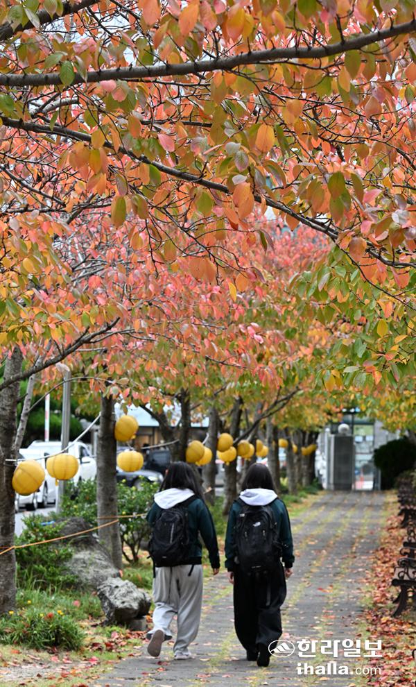 [한라일보] 12일 제주시 중앙여자고등학교 교정 내 왕벚나무에 울긋불긋 단풍이 내려 앉아 깊어가는 가을을 알리고 있다. 강희만기자