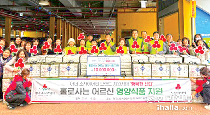 제주사회복지공동모금회(회장 강지언) 고액기부자 모임 '제주 아너 소사이어티(회장 장성욱)'는 지난 18일 제주시민속오일시장에서 제주시홀로사는노인지원센터(센터장 김지수)와 함께 '행복한 산타' 봉사활동을 운영했다.