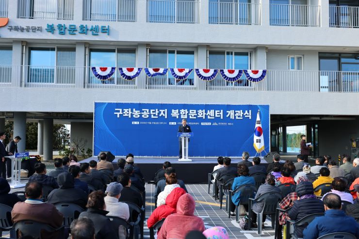 제주시는 지난 21일 김완근 제주시장, 김경학 제주도의회 의원, 홍영기 한국산업단지공단 광주지역본부장 등 각급 농공단지 기관·단체장과 지역주민 150여 명이 참석해 구좌농공단지 복합문화센터 개관식을 가졌다.