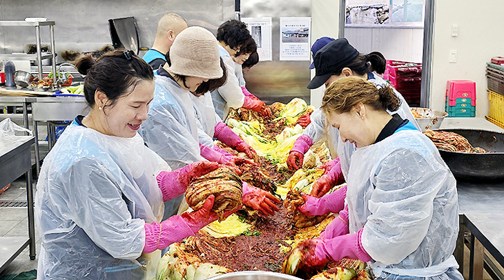 서귀포시 효돈동지역사회보장협의체(공동위원장 김경미·이명소)는 지난 22일 위원 20여 명이 참여해 김장김치를 담가 취약계층 100가구에 전달했다.