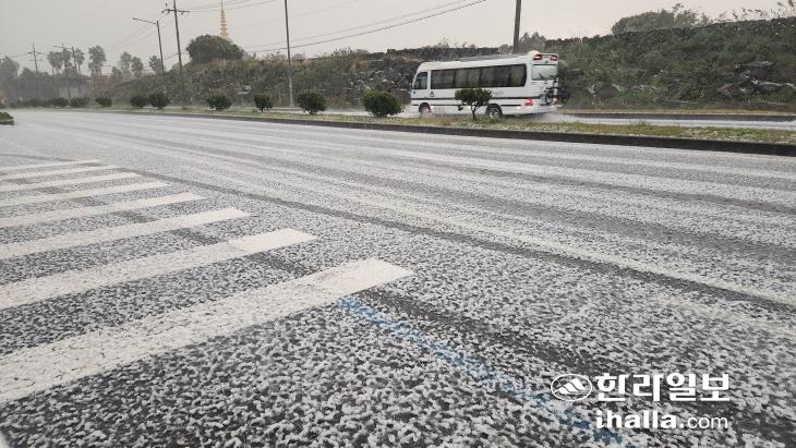 제주 동부인 삼양동과 봉개동, 조천읍 일대를 비롯해 애조로와 북부인 노형동 등에서도 싸락우박이 내렸다. 특히 조천읍 일대에는 오전 8시40분쯤 도로를 하얗게 덮힐 정도로 쏟아졌다.