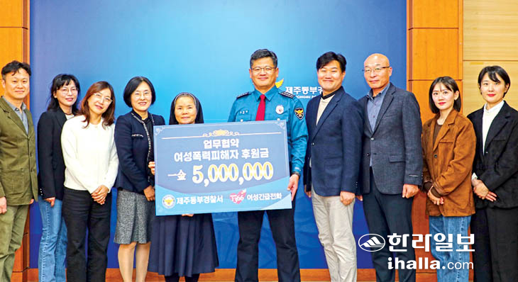 이날 행사는 여성폭력 피해자 가족이 경찰에 전달한 기부금 500만원을 1366제주센터에 연계해 위기 상황의 여성폭력 피해자들의 긴급생계비, 보호물품 지원 등에 사용될 수 있도록 협약하기 위해 마련됐다.