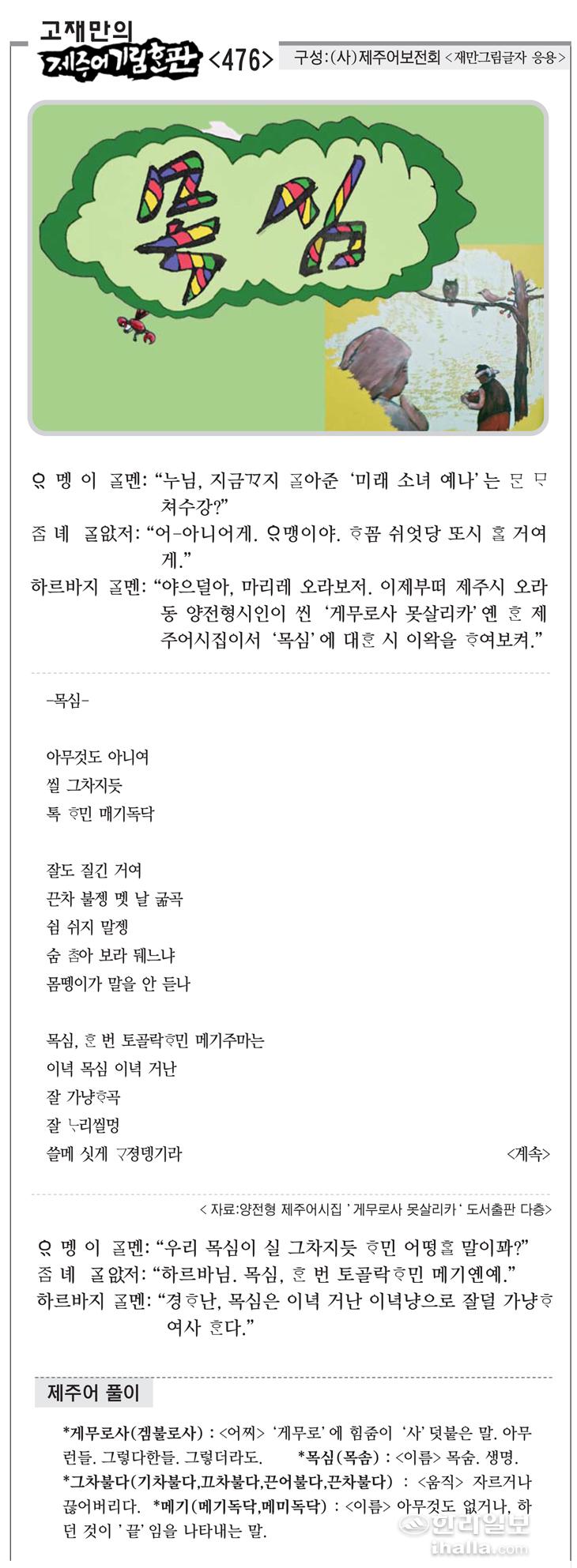 [고재만의 제주어기림혼판] 제주어 풀이(476)