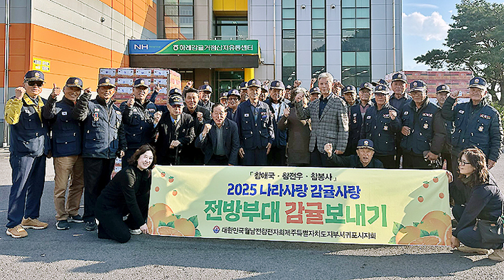 대한민국 월남전참전자회 서귀포시지회(지회장 강문숙)는 지난 24일 하례감귤거점 산지유통센터에서 회원 40여 명이 참석한 가운데 전방부대 장병들을 위한 감귤 10㎏ 680박스 전달 기념 행사를 개최했다.