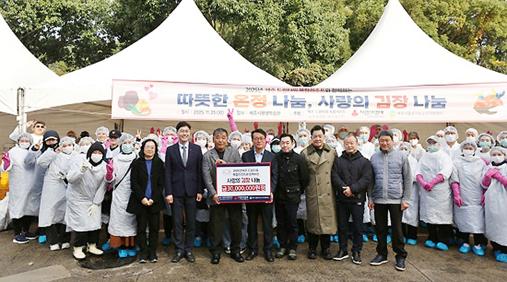 이번 행사는 오리온재단이 용암해수산업 육성과 지역 사회 공헌 프로그램을 위해 기탁한 용암해수 활성화 기금으로 마련된 것으로 지난해에 이어 두 번째다. 이날 담근 김치는 한동리 200여 가구에 전달될 예정이다.