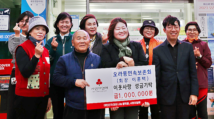 제주시 오라동민속보존회(회장 이훈택)는 지난달 25일 저소득가정을 돕기 위해 100만원을 오라동에 지정 기탁했다. 이번 기탁금은 지역 내 저소득가정을 선정해 생계비나 생활지원금으로 활용할 계획이다.