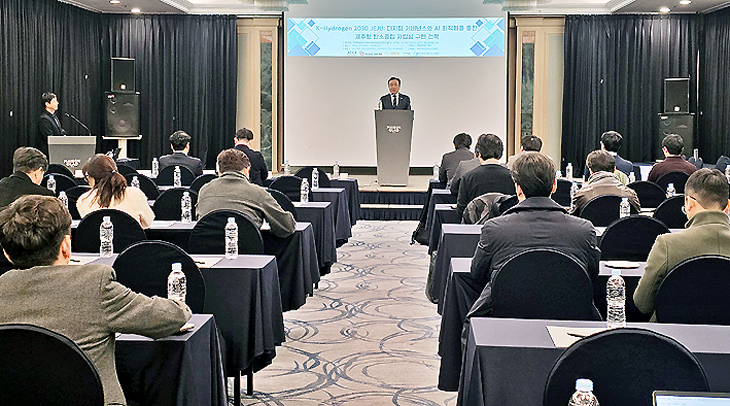 'K-Hydrogen 2030 JEJU: 디지털 거버넌스와 AI 최적화를 통한 제주형 탄소중립 자립섬 구현 전략' 세미나가 4일 메종 글래드 제주 제이드홀에서 국내 수소·탄소중립 분야 전문가 등이 참석한 가운데 열렸다.