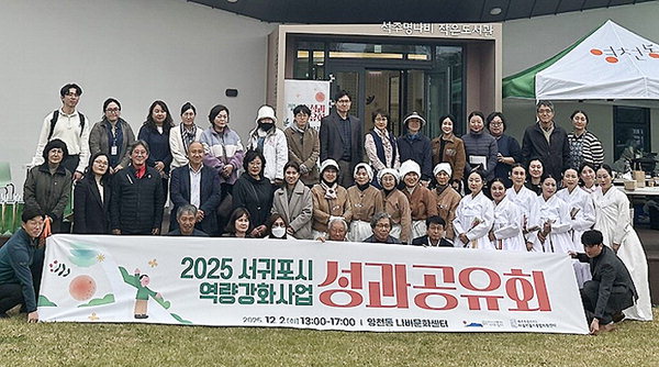 [한라일보] 서귀포시와 제주특별자치도 마을만들기종합지원센터는 지난 2일 영천동 나비문화센터에서 주민 100여 명이 참여한 가운데 한 해 동안의 주민주도 마을발전성과를 공유하는 '2025년 서귀포시 역량강화사업 성과공유회'를 개최했다.